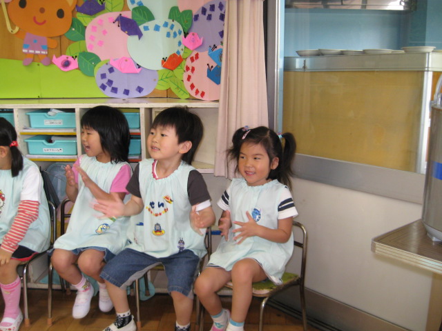 今日から新しいお友達のかほちゃん(10か月)が入りました。歌や手遊びが好きなようで喜んで手を動かしていました。笑顔もたくさん見せてくれてとっても嬉しいです!これからお友達との関わりを沢山持って、楽しく過ごせるようにしていきたいと思います。