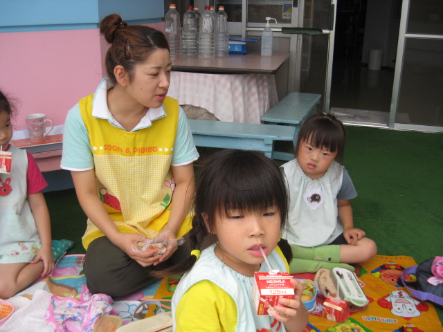 9月から新しいお友達、健太郎君(5か月)悠生君(11か月)心海ちゃん(1歳3カ月)の3名が乳児組に入りました。まだ慣れずに時々泣いていることもありますが、少しずつ自分から好きな遊びを見つけて遊ぶようになってきました。