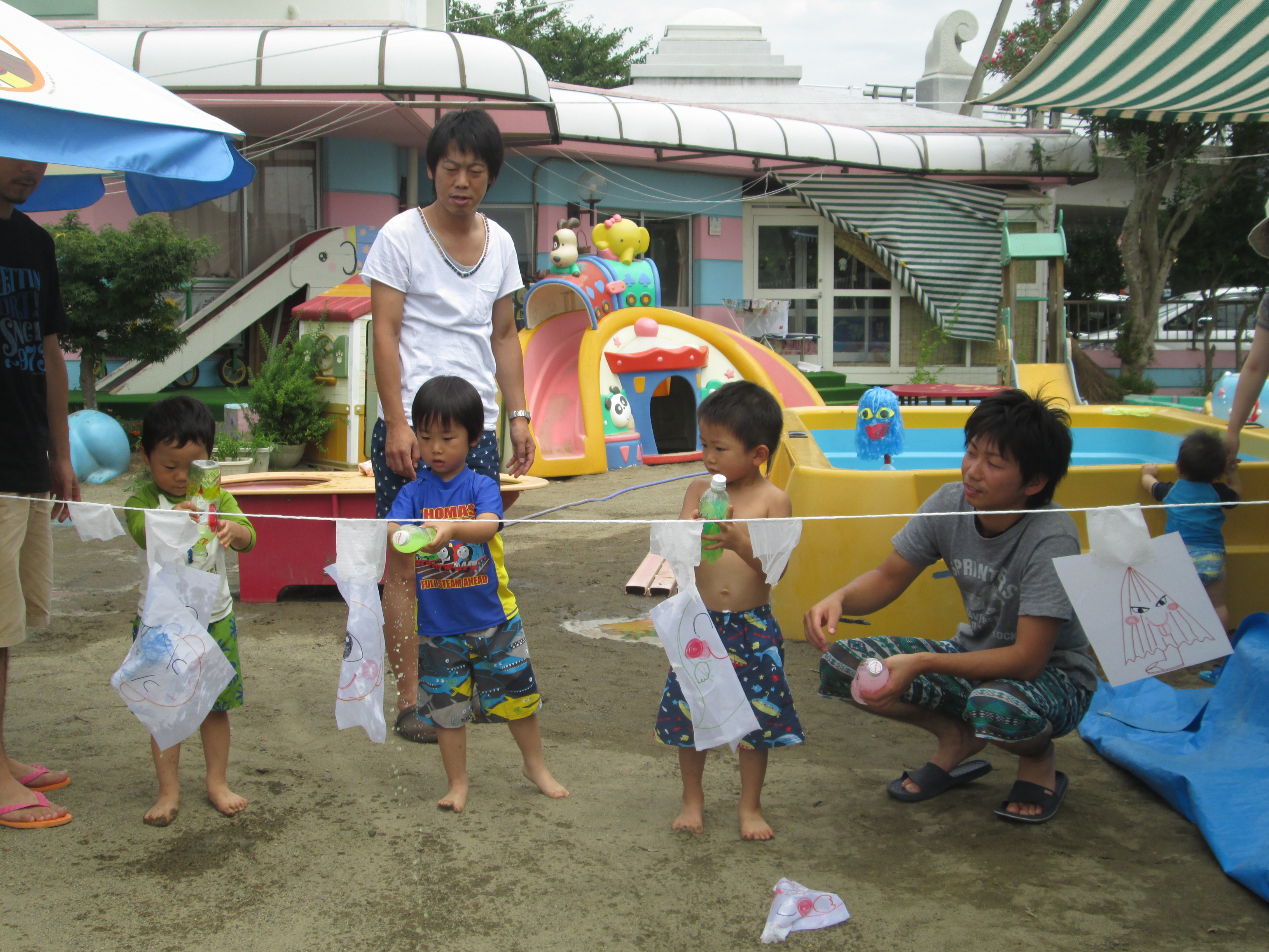 プールの中で水風船で遊んだりお父さんと一緒に楽しく遊ぶことができました。