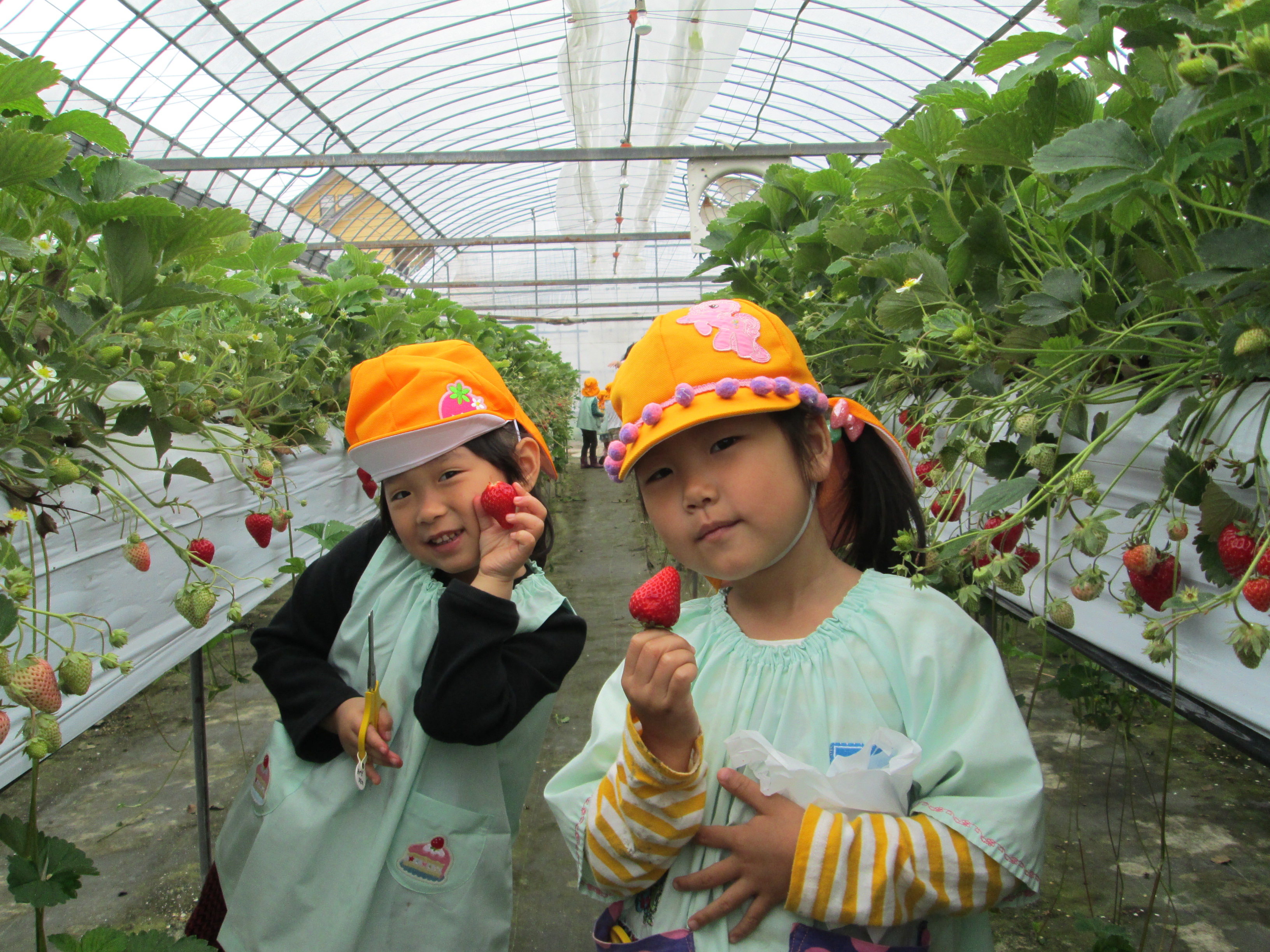 大洗ベリーフィールズさんより、イチゴ摘みのご招待を頂いて光、望の園児たちで伺いました。